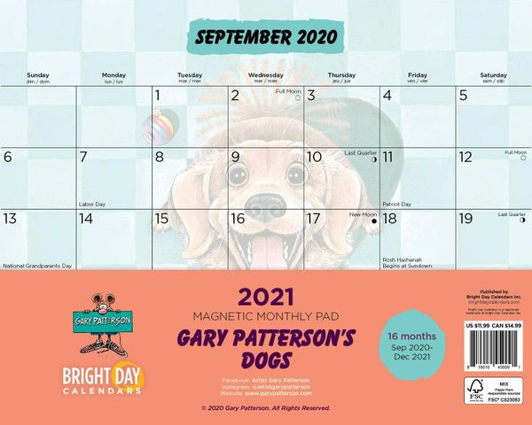 2021 dogs wall calendar 14 99 brighten your year with a lot of humor with this 2021 wall calendar featuring a dozen full color gary patterson dog cartoons and plenty of grid space for making notes important appointments and events. Gary patterson s cheerful artwork captures the lighter side of life with pets. Gary patterson cat dog designs are cute fun whimsical the perfect gift for anyone.